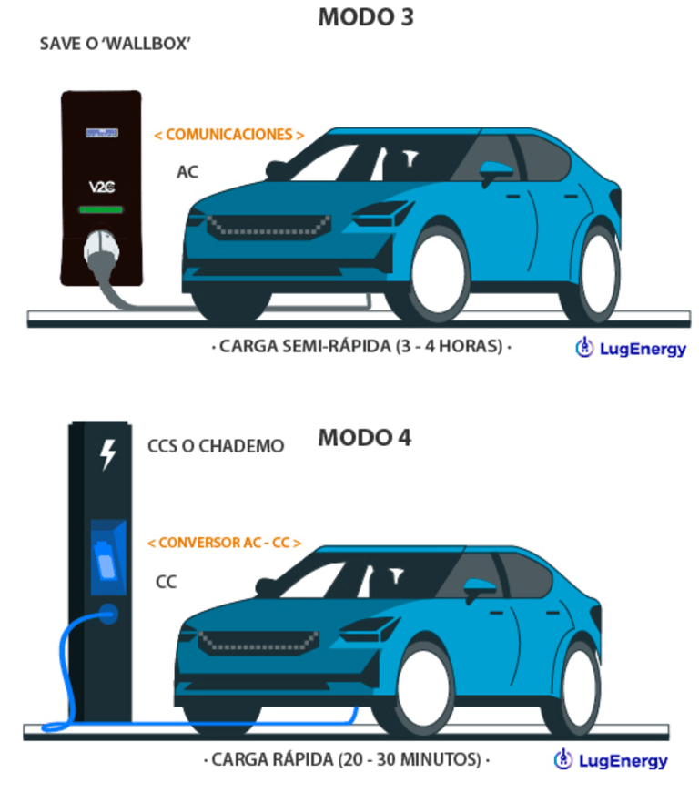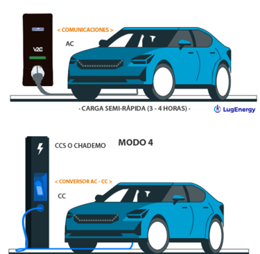 Modo 4 — recarga ultrarrápida: Opera em corrente contínua (DC), exigindo infraestrutura elétrica robusta e sistemas de monitoramento de alta capacidade.